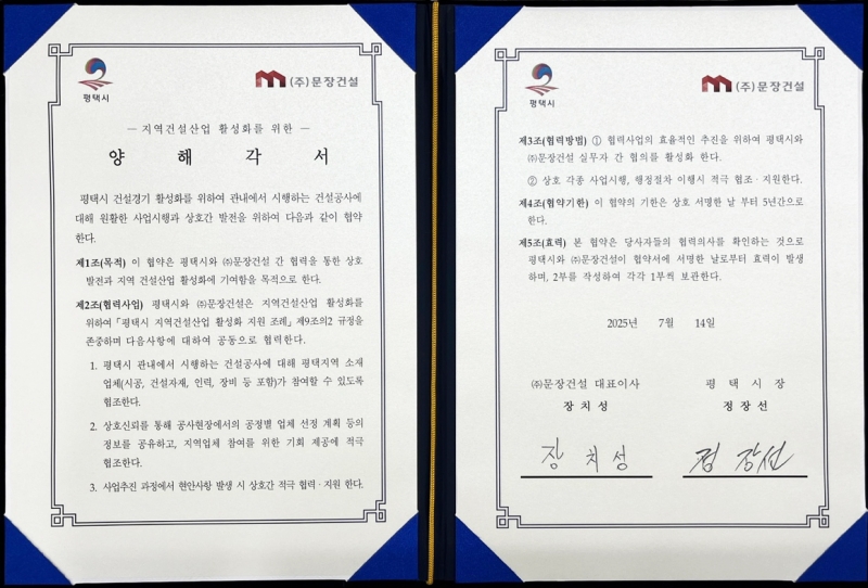 평택시, 건설공사 시공사와 협약 체결식 개최... 지역건설산업 활성화 위한